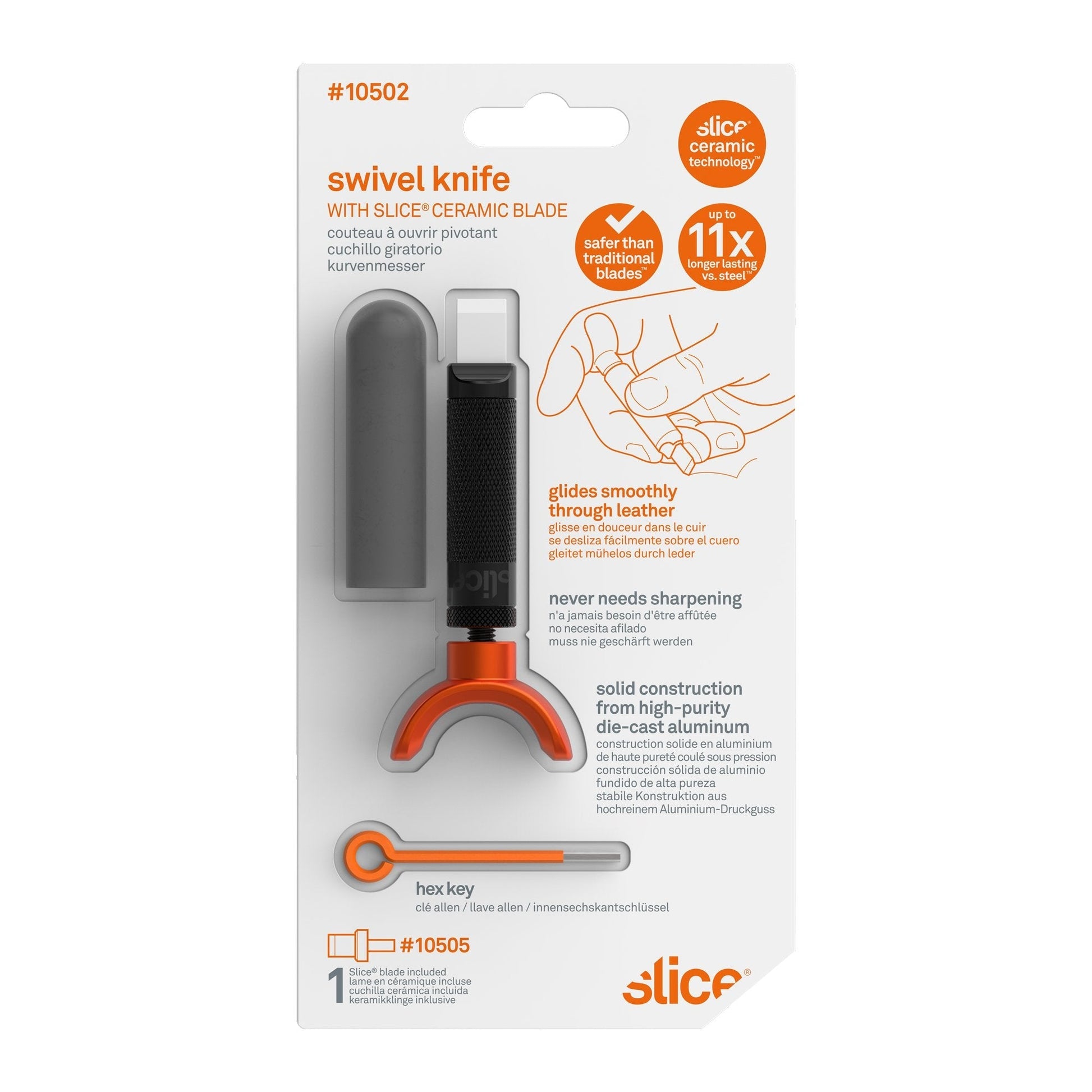 Are you frustrated with your swivel knife because it never stays sharp? Do you find you can’t work with your tool for an extended period of time? Never fear, for the Slice® Swivel Knife is here!